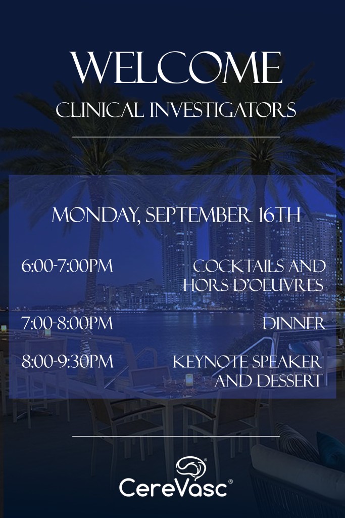 “Welcome Clinical Invesitgators” dinner meeting poster made for print for CereVasc